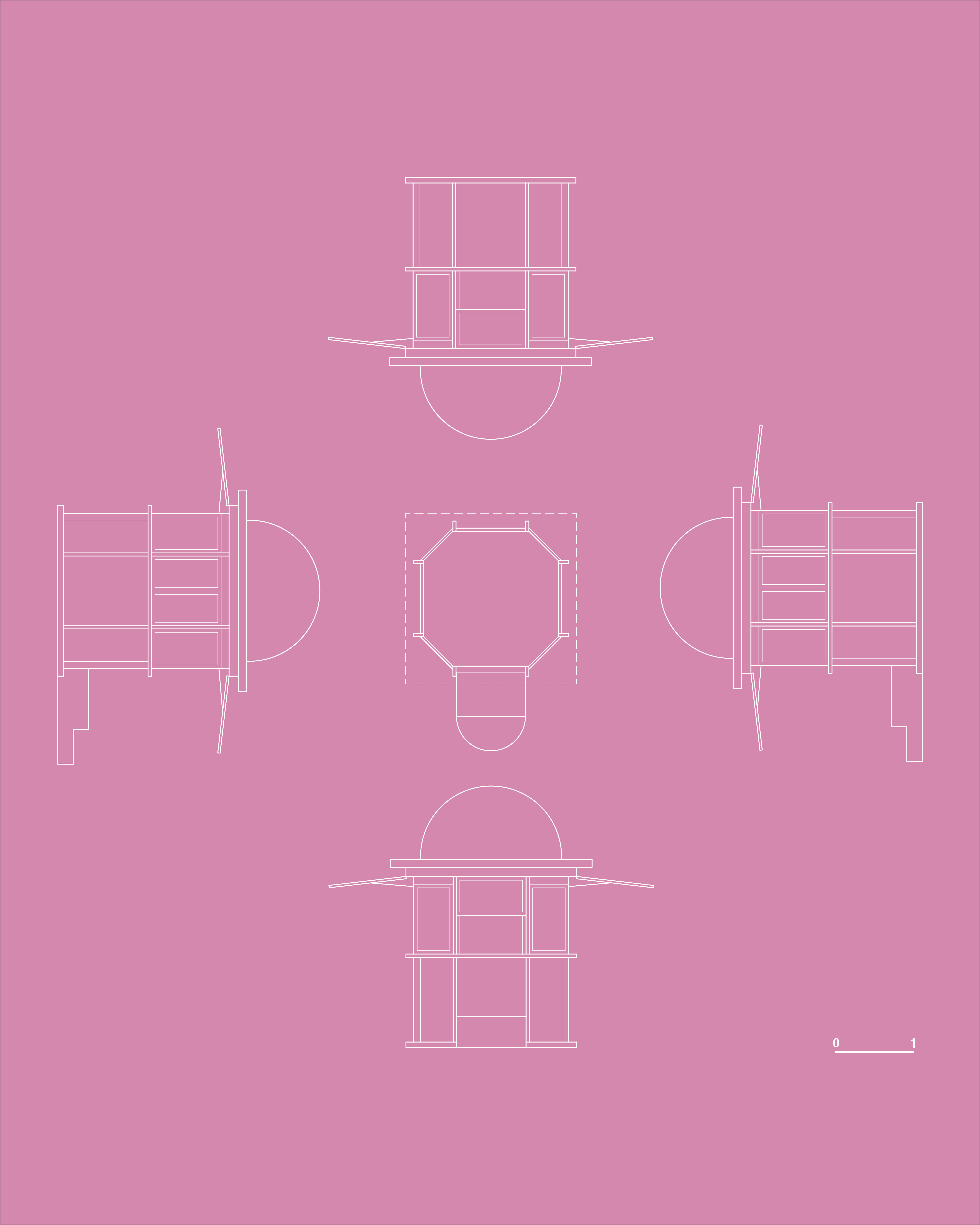 The rehabilitation project surgically transforms the five kiosks, taking advantage of their spatial and urban qualities. The rehabilitation strategy involves: repairing the existing structures, emptying their interior space, standardizing their color, and adding new external elements in alignment with the exhibition needs of each artist.